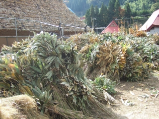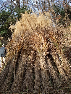 この日刈り取った茅が,今後の屋根葺き替え作業で使われます。