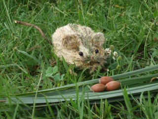 ↑カヤネズミクラフトのお手本です。かわいくできるでしょうか。
