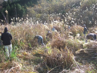 2007年12月9日,10日の二日間に渡って茅刈り体験をしました。