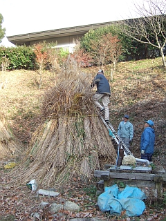 このあと,公園に運んだ茅の保管作業も合わせて行いました。