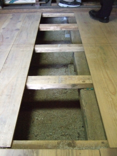 ↑老朽化した資料館の床下。