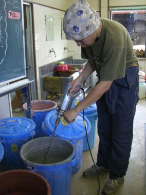 ↑バケツの底までよく混ぜて~