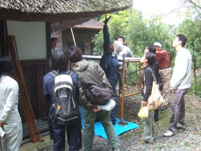 簡単に当日の作業や茅葺き屋根の仕組みについて説明があり,