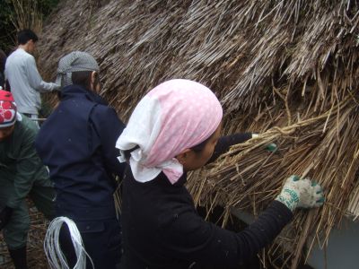 みんなの力を合わせて,いざ葺き替えです!!