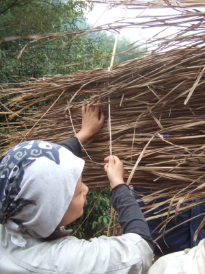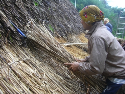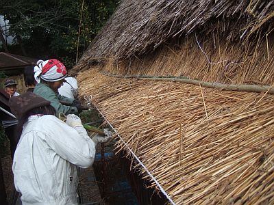 次は,新しい茅を葺いていく作業に移ります。