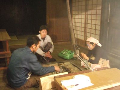 ご飯も終わり,囲炉裏でくつろぎながら雑談などなど。