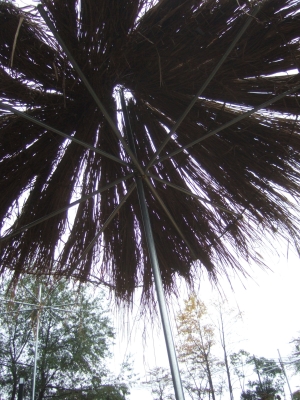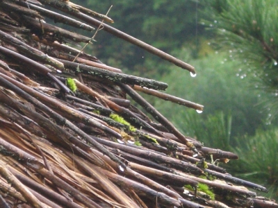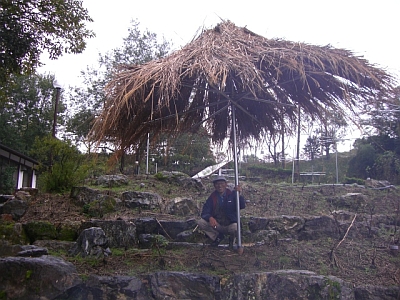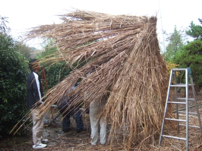 ↑ようやく完成した休憩用の茅葺き屋根。